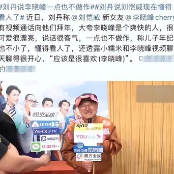 第二个细节,刘恺威父亲刘丹前后差异太大,当时刘恺威与李晓峰恋情刚曝光的时候,刘丹对李晓峰赞不绝口,称这个女孩又漂亮又懂事,而如今却否认儿子交往女朋友。